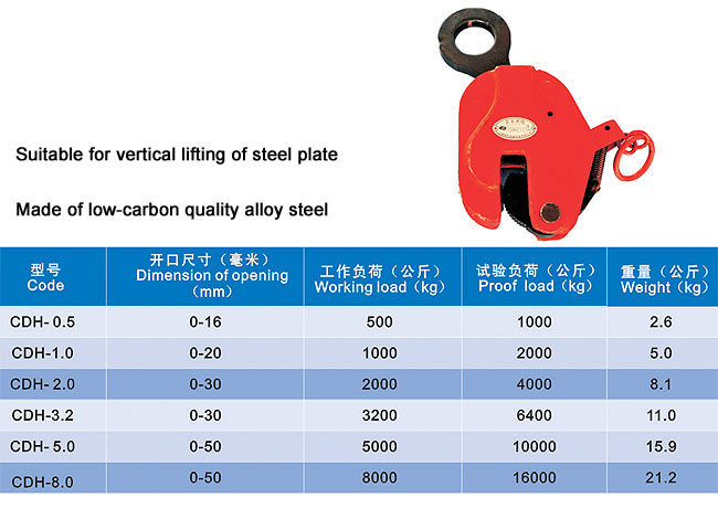 The steel plate clamp is mainly applied to horizontal and vertical lifting steel plate and lifting steel bars and oil drum. Due to rational mechanics theory, it features small size, light weight, safety usage, compacted structure and convenient installation and adjustment and high efficiency.
