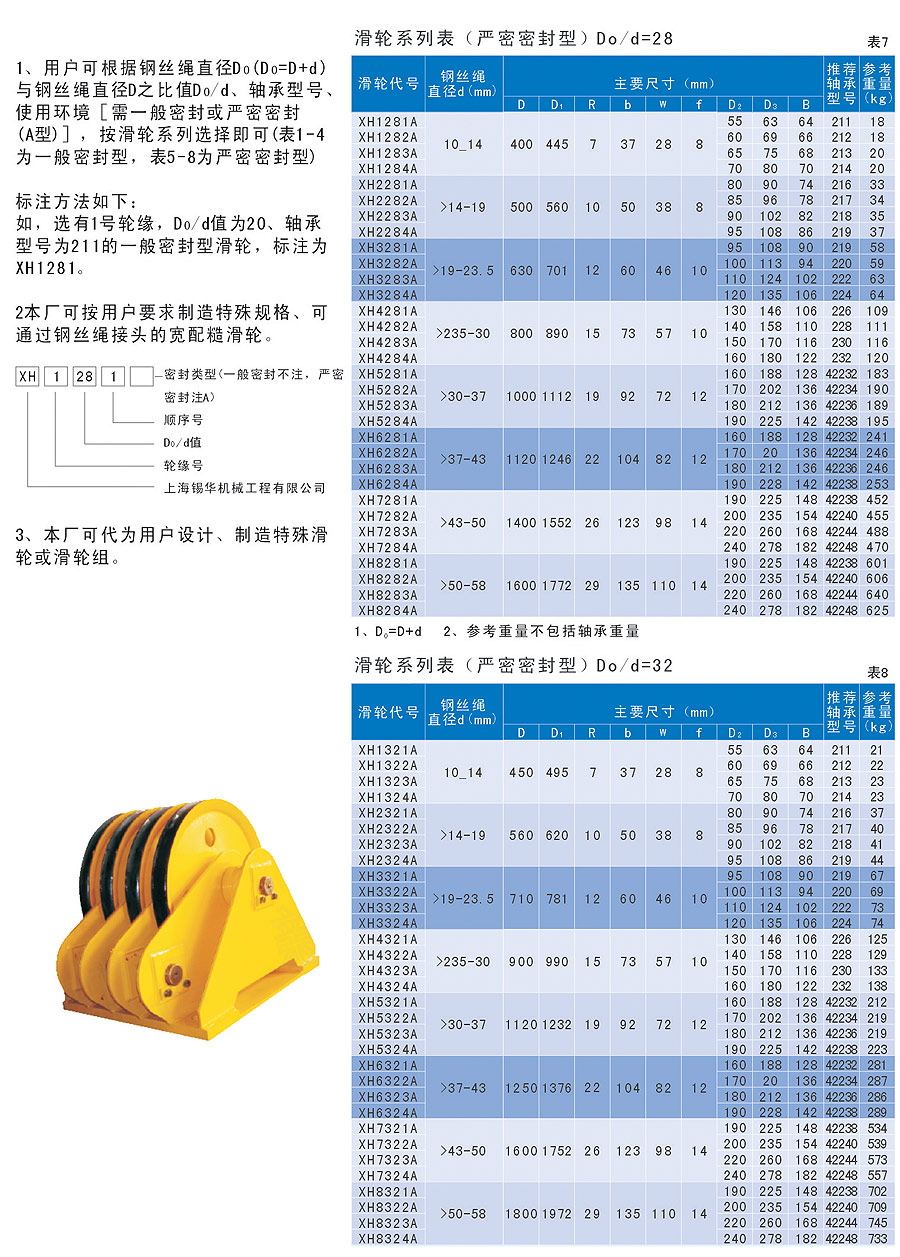 滑車按輪數(shù)的多少分為單門滑車,雙門滑車和多門滑車。按滑車與吊物的連接方式可分為吊鉤式滑車,鏈環(huán)式滑車,吊環(huán)式滑車和吊架式滑車四種。一般中小型的滑車多司于吊鉤式、鏈環(huán)式和吊環(huán)式,而大型滑車采用吊環(huán)式和吊梁式。按輪和軸的接觸不同可分為輪軸間裝滑動軸承及滾動軸承兩種。按夾板是否可以打開來分,有開口滑車和閉口滑車。開口滑車的夾板是可以打開的,便于裝繩索,一般的都是單門滑車,它常用于扒桿底腳處作導(dǎo)向滑車用。滑車按使用的方式不同又分為定滑車和動滑車。使用方便,用途廣泛,可以手動,機動。主要用于工廠、礦山、農(nóng)業(yè)、電力、建筑的生產(chǎn)施工,碼頭、船塢、倉庫的機器安裝,貨物起吊等。
